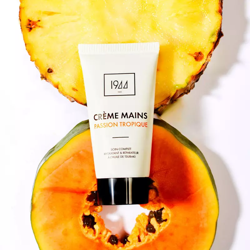This hand cream in tube format with exotic fruits (pineapple, mango, papaya...) is a complete moisturizing and repairing treatment. It is composed of plant extracts such as Tsubaky oil from camellia flower, Argan oil and Avocado oil.