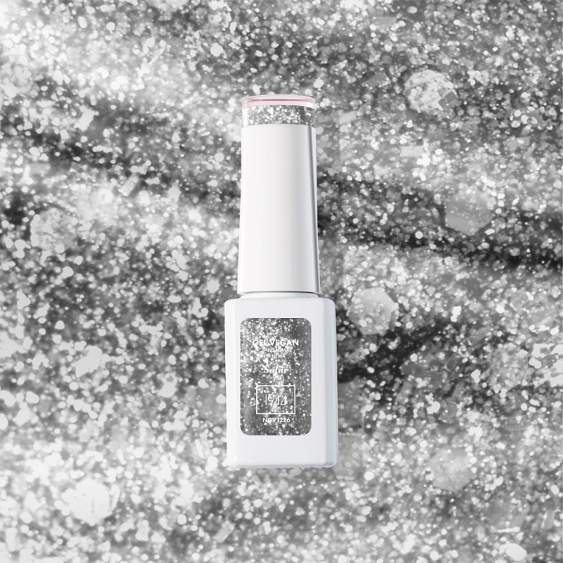 Sofia, a frosted silver, is a shimmering silver with luminous glitter, evoking the beauty of shimmering snowflakes, for a touch of freshness and icy glamour.