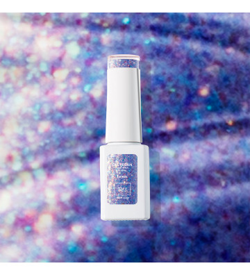 Lyra, an iridescent pastel with changing shades, a chrome veil that captures the light like an aurora borealis.