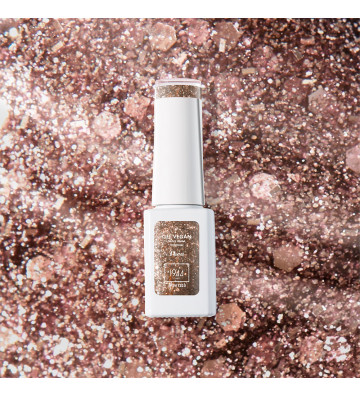 Rosalia, a vibrant pink enhanced with gold glitter. Warm, flamboyant, and radiant.