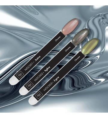 Our Chrome collection features intense metallic reflections and a striking mirror finish for a high-shine, jewel-like effect. These futuristic, bold, and luminous shades transform every nail into a stylish accessory in its own right.