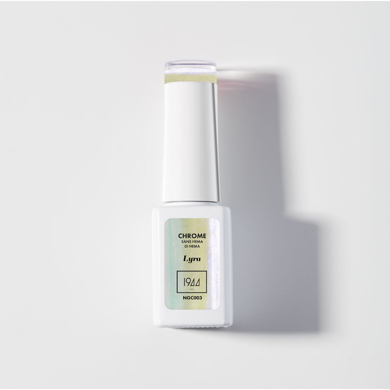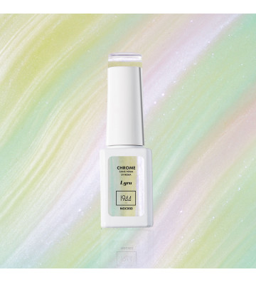 Lyra, an iridescent pastel with changing shades, a chrome veil that captures the light like an aurora borealis.
