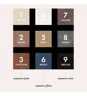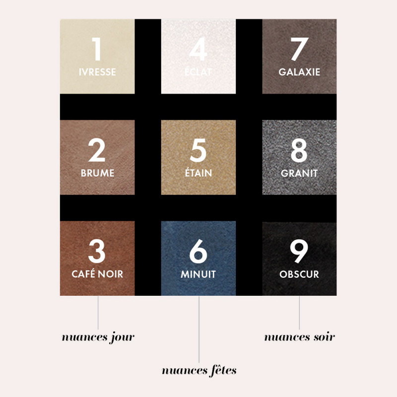 7 - GALAXIE: Iridescent black with subtle reflections. Starry and vibrant, for a magnetic look. Ideal for evening makeup.