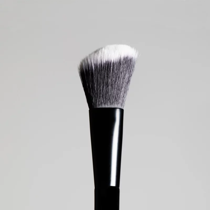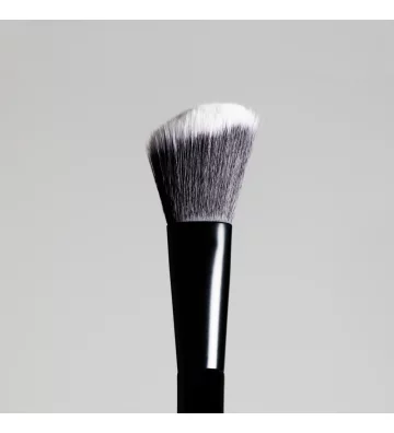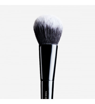 Le pinceau fond de teint au design arrondi en fibres synthétiques.