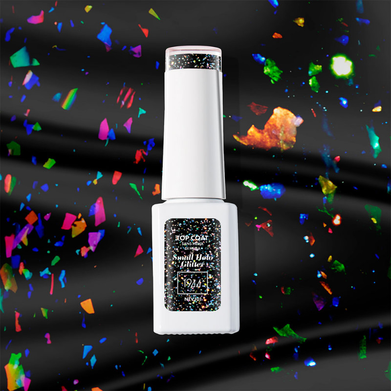 Pour une brillance délicate et raffinée, optez pour le Top Coat Small Holographique Glitter Sans Hema Di-Hema. Ses petites paillettes holographiques ajoutent un éclat subtil et élégant, parfait pour illuminer légèrement vos ongles tout en garantissant une formule douce pour les peaux sensibles.