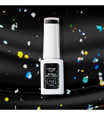 Faites briller votre manucure avec un éclat argenté plus prononcé grâce au Top Coat Medium Silver Glitter Sans Hema Di-Hema. Ce top coat enrichi de paillettes argentées de taille moyenne ajoute une touche de scintillement idéale pour un look festif et audacieux, tout en étant doux pour les ongles sensibles.