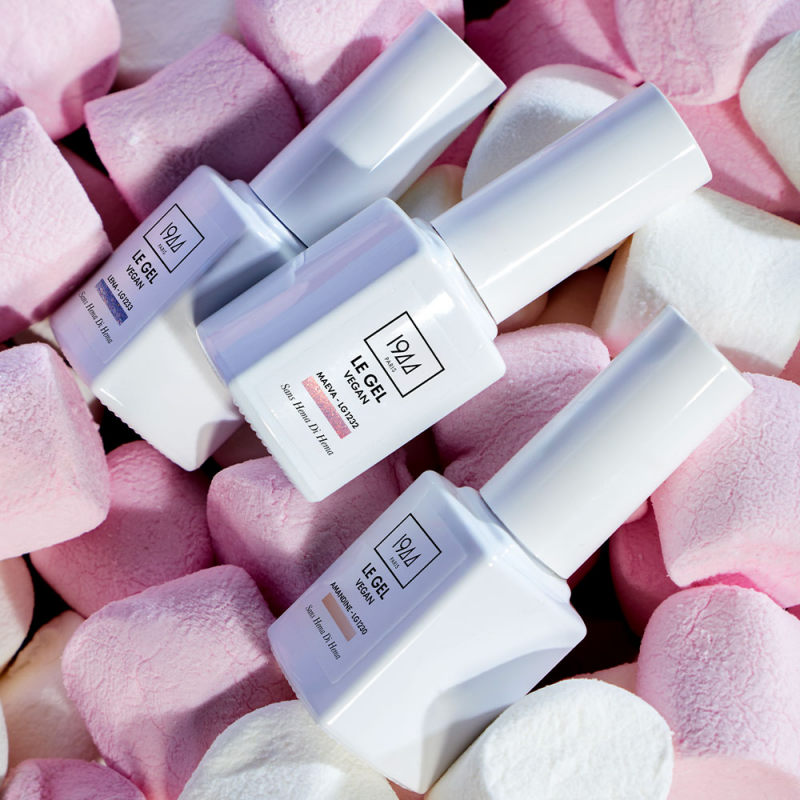 La gamme le Gel Vegan 1944 Paris, est un Gel Semi permanent Vegan, Cruelty Free, offrant une tenue et une brillance incomparables grâce à sa nouvelle formule.