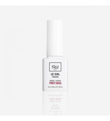 La gamme le Gel Vegan 1944 Paris, est un vernis Semi permanent Vegan, Cruelty Free, offrant une tenue et une brillance incomparables grâce à sa nouvelle formule. Gel couleur rose pailleté